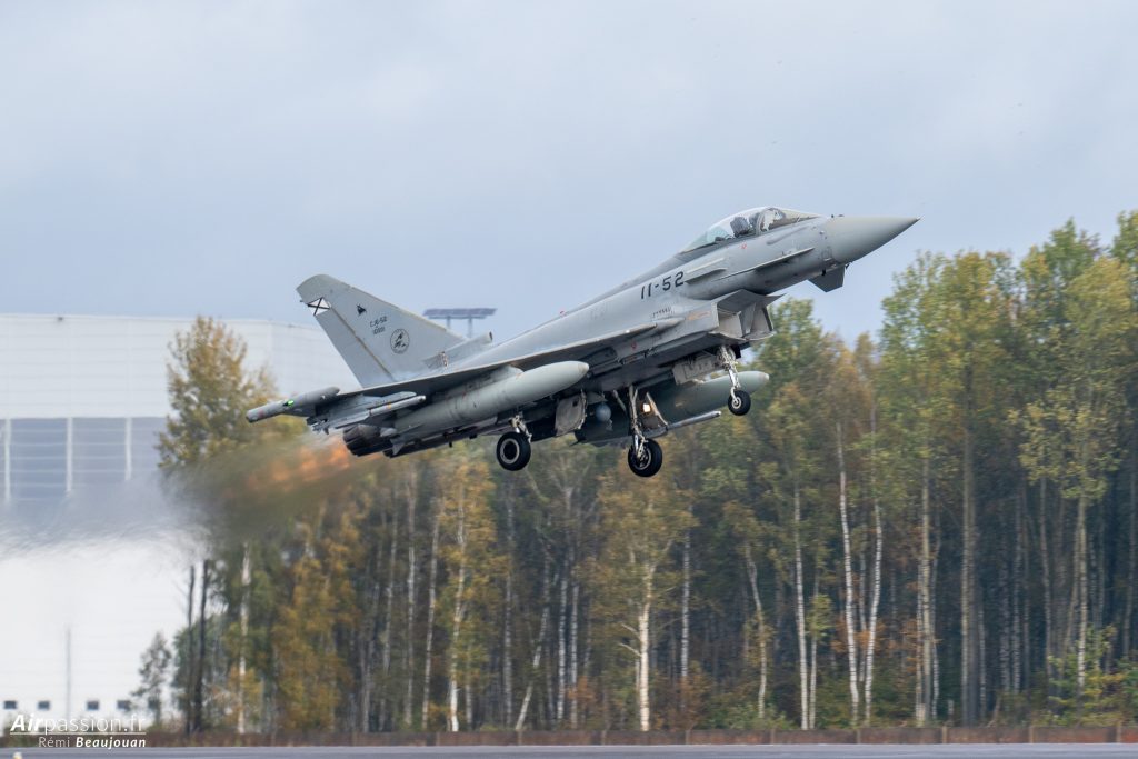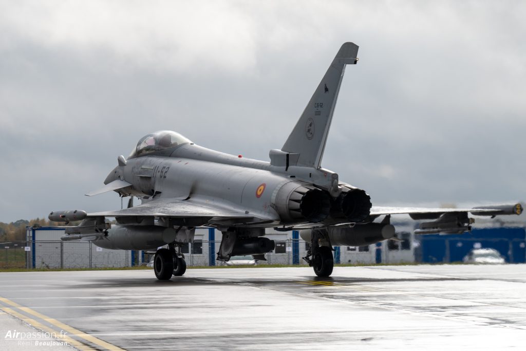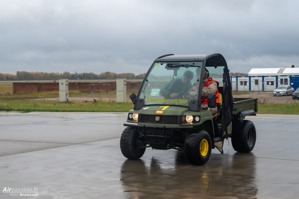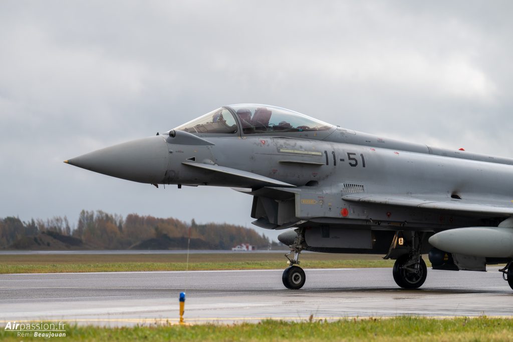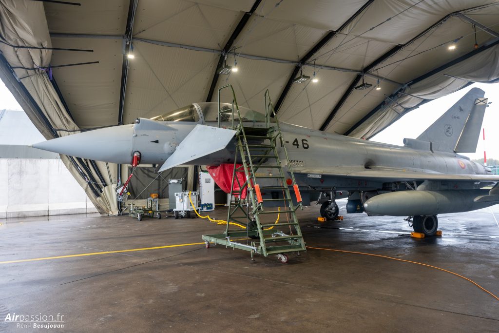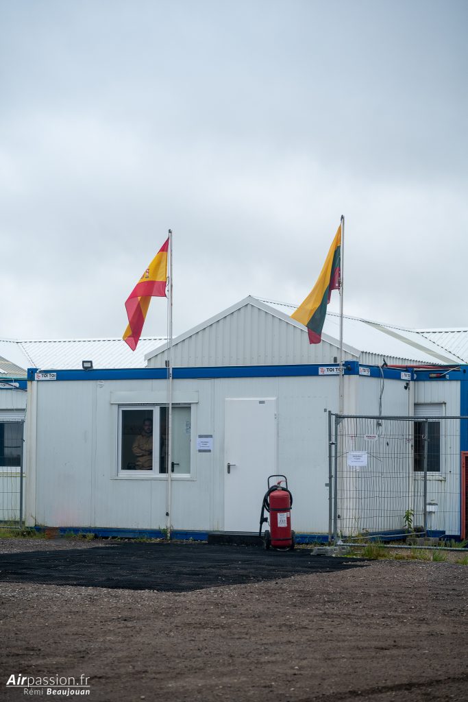 Notre visite commence par la visite du détachement espagnol. L’Espagne est un des plus gros contributeurs de détachements dans le cadre de cette mission. C’est en effet la douzième fois que des pilotes espagnols rejoignent les cieux baltes pour en assurer la mission. C’est aujourd’hui l’escadrille 11 de l’Ejército del Aire y del Espacio (Armée de l’air et de l’espace) qui est déployée. Elle se retrouve bien loin des cieux sévillans. En effet, elle est habituellement basée sur la base aérienne de Morón, dans le sud de l’Espagne.