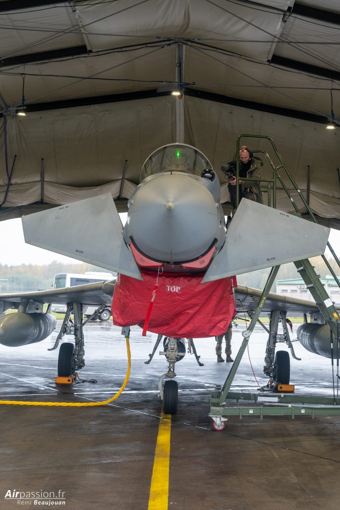 Les pilotes détachés pour cette mission sont tous des pilotes confirmés. Un des pilotes nous confie ainsi avoir plus de 2.000 de vol sur Eurofighter Typhoon. Leur vol de convoyage a duré près de 4 heures et a nécessité un ravitaillement en vol au-dessus de l’Allemagne. En effet, l’autonomie en vol du Typhon approche les deux heures. Bien entendu, c’est fort variable en fonction de la configuration, de la mission et du plan vol.