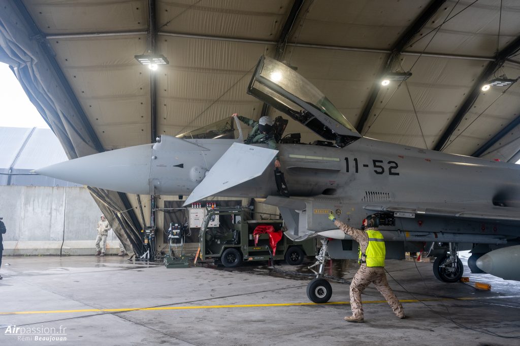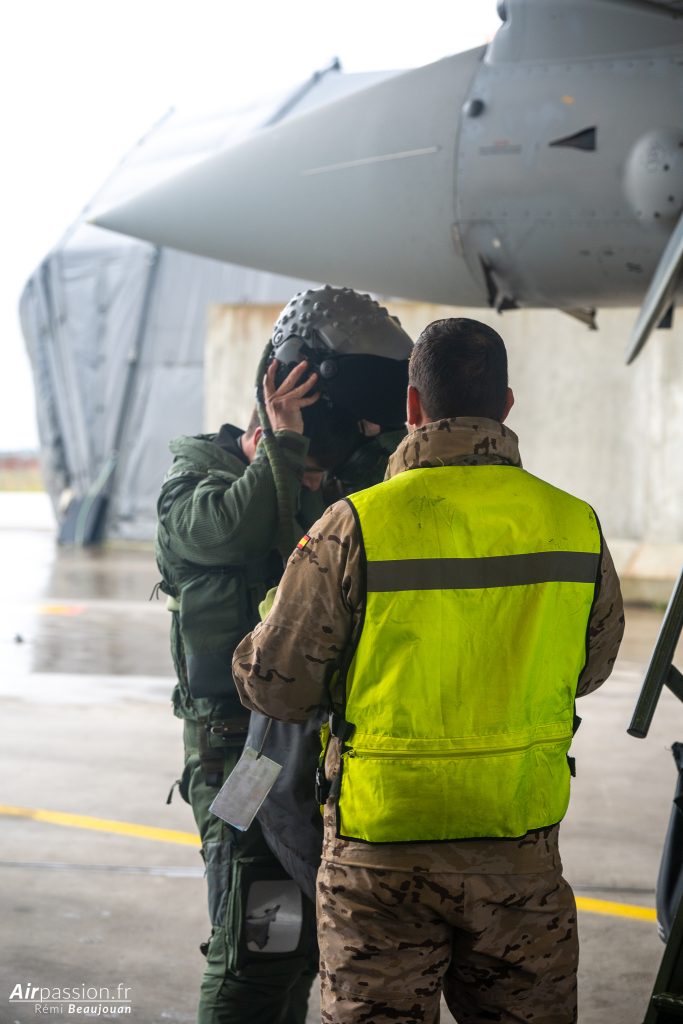 Nous sommes accueillis par le Lieutenant-Colonel (OF-4) Francisco Holgado Del Águila, Commandant du détachement espagnol. Il nous explique, qu’au delà de la mission de police aérienne, ce détachement permet de maintenir et d’augmenter leurs capacités opérationnelles dans le cadre de mission d’entraînement. En effet, l’environnement aérien et les conditions météo obligent à appréhender différentes configurations de mission.