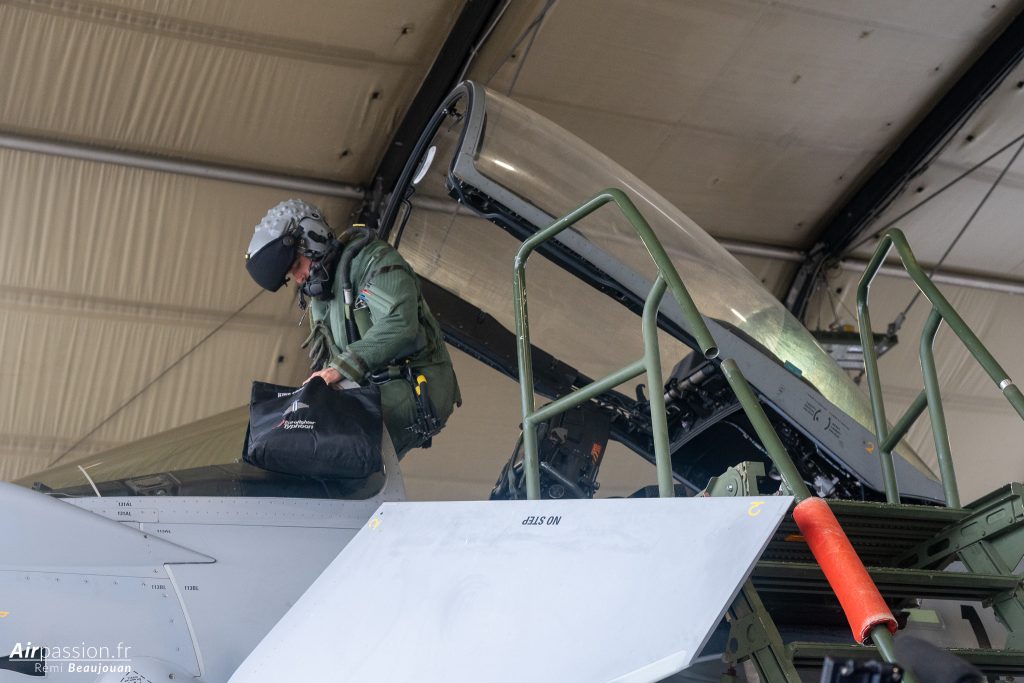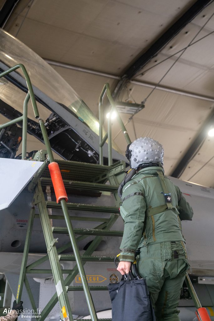 L’occasion nous est offerte d’assister à un entraînement de départ en alerte. Le fameux « Scramble » où, partout dans le monde, les pilotes se précipitent en courant vers leurs avions pour décoller en urgence. Ici le challenge est de faire décoller deux avions en moins de quinze minutes à partir du déclenchement de l’alerte. Les avions partent en effet toujours par deux pour assurer cette mission.
